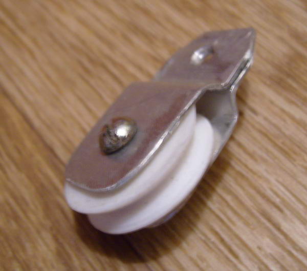 это заготока из фторопласта, которую пришлось немного расточить под мои 3мм-е стропы