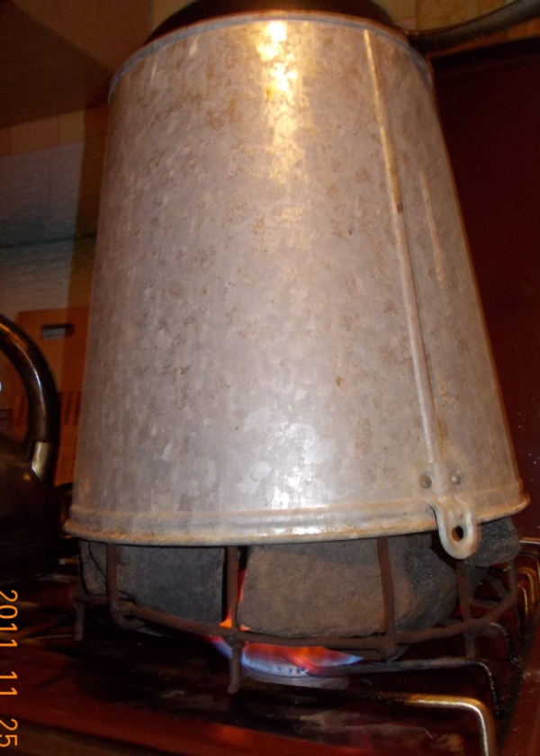 В общем сейчас 20кг покупных и 10-15км местных. Корзина имеет форму усечённого конуса. При первом нагревании понял что большая часть тепла отводится в стороны, под рукой оказалось 15-ти литровое ведро, неплохо подходящее в качестве отражателя, вырезал дно, одел сверху, проблема решилась.