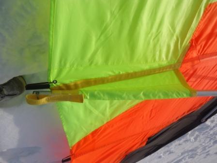 О, эта находка предмет моей особой радости и гордости! Как я уже писал, боковины каркаса крыла сделаны из армированной стекловолокном водопроводной полипропиленовой трубы наружным диаметром 20 мм, которая глубоко вставляется в основную опору передней кромки с захватом второго слоя стеклопластиковой трубки. На испытаниях такое решение превзошло все мои ожидания. Хорошо работает даже при паденияк на крыло. Правда, я не катался при сильных морозах, а в справочниках и рекомендациях по монтажу полипропиленовой сантехники пишут о хрупкости полипропилена при низких температурах. Пока же ничего подобного я не заметил.