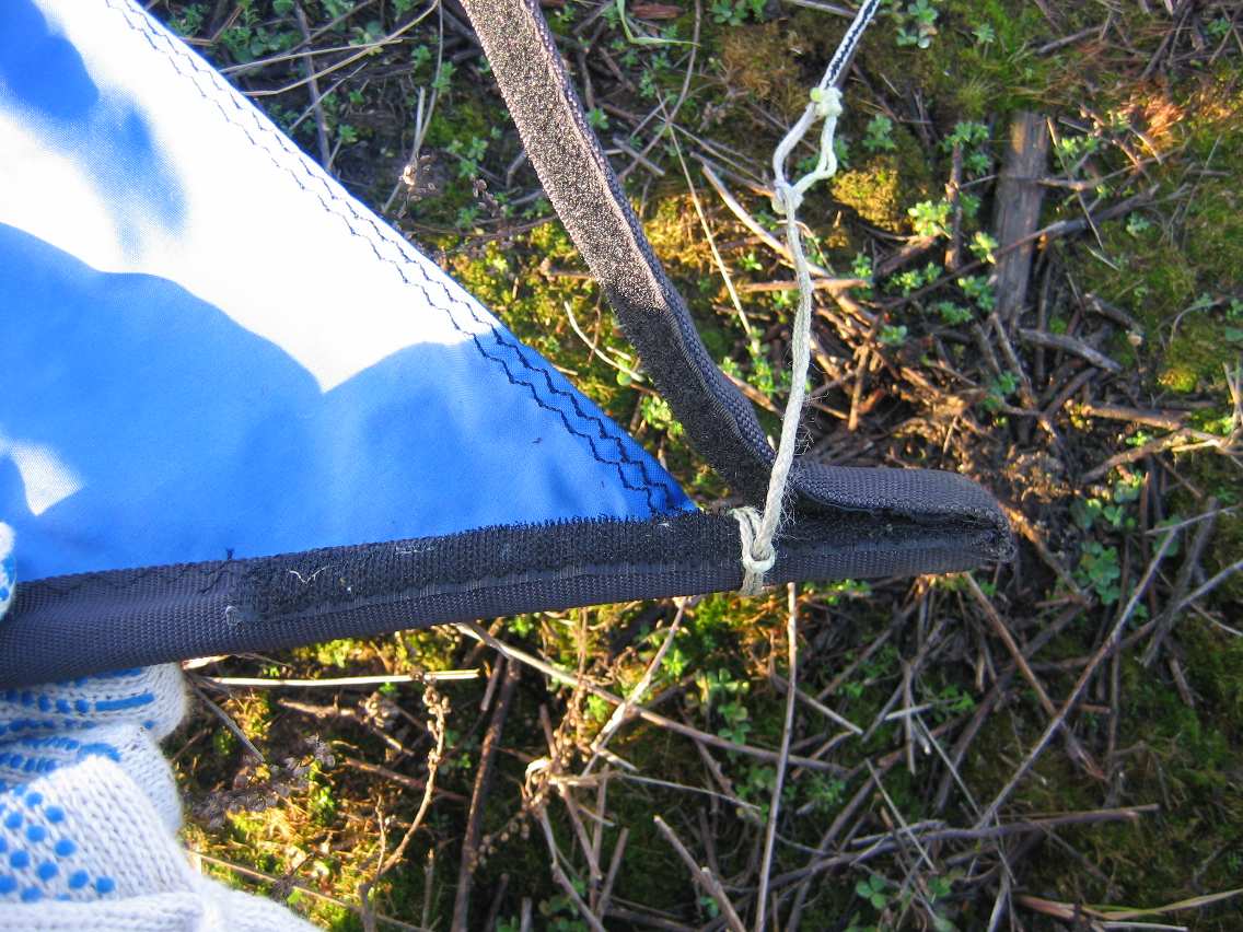 В итоге сломали каркас в двух местах. Первая поломка в нижней трети уха, видимо, при неудачном приземлении. Вторая, ближе к середине того же крыла, когда порывом почти вывернуло переднюю кромку.