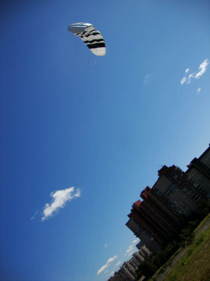 Да, сначала была родная строповка. Управляющими стропами рулился тож фигово и терял тягу. На силовых запросто крутил горизонтальные восьмерки. Хотя я кайт запускал второй раз в жизни.
