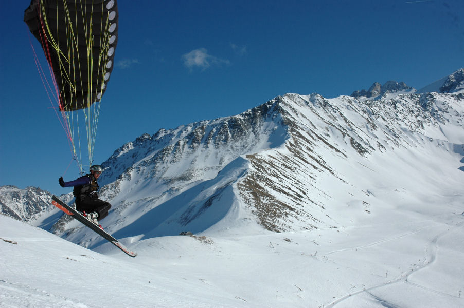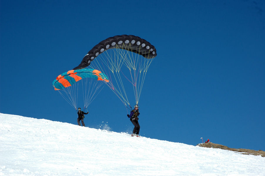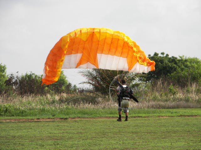 По слухам сейчас движки весят до 15 килограмм ,тоесть облегченного варианта и мощностью повышенной!,а крылышко само по себе летучее,на сколько помнится при старте на пара параплане нужен инерционный толчок,тоесть ечсли ты разогнался то ты взлетишь и без ветра ,также и Граундлонч -на парашюте с горы,а тут темболее струю с движки,она моногоне компенсируеть и создает излишнее давление и помогает в начальной стадии подьема!