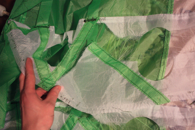 на всех рибах усиления из самоклеящегося рип стопа. в местах где клапана из дакрона.