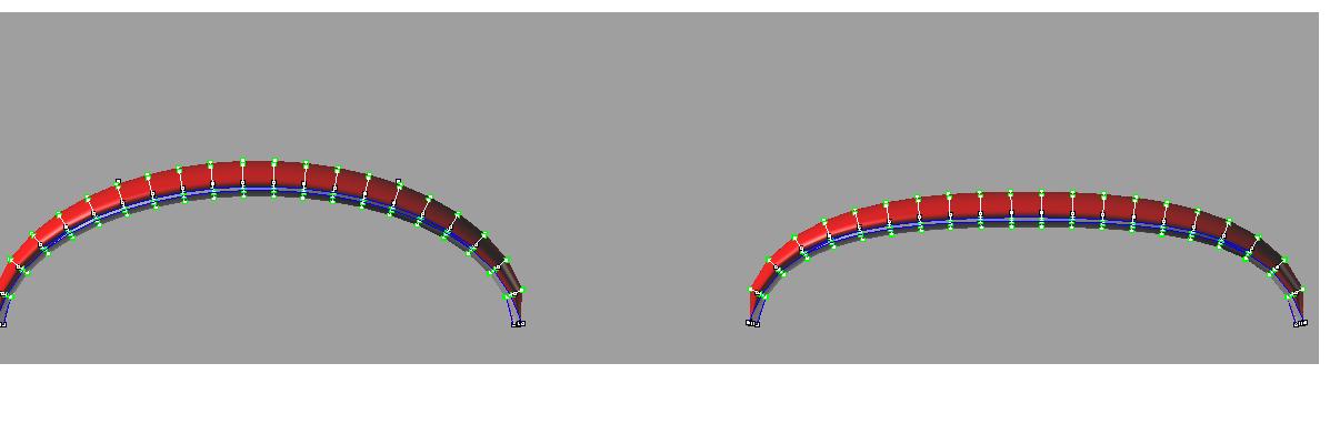Кроме того более плоский кайт при энергичной рулежке может развернуться на одном месте,практически без изменения тяги, а более горбатый при этом будет закладывать в небе круг, с серьезным увеличением тяги (кайтлуп), что используется для прыжков. Разница в тяге (подъемной силе) будет зависеть от того, насколько сильно будет отличаться арочность кайтов. При примерно такой, как на рисунках - будет довольно незначительной, т.к. разница в проекционных площадях будет перекрываться развитьстью концевых аэродинамических шайб.