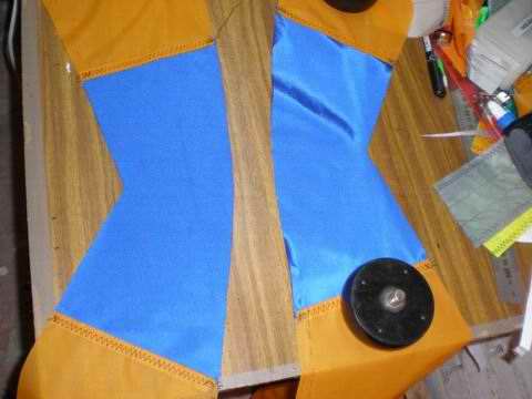 ...теперь самая интересная и тканеемкая работа,это соединение верха и низа по передней кромке (вот зачем необходимо было делать небольшое отступление в момент установки нервюр).
