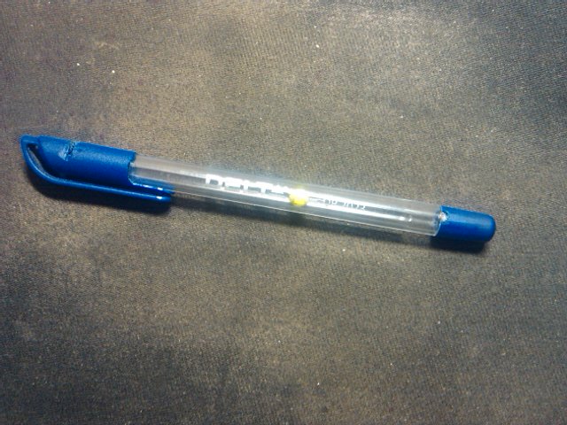 Итак находим прозрачную авторучку, с максимальным диаметров внутреннего канала. Мне понравилась авторучка Delta DB2023. Такая надпись у нее на борту.