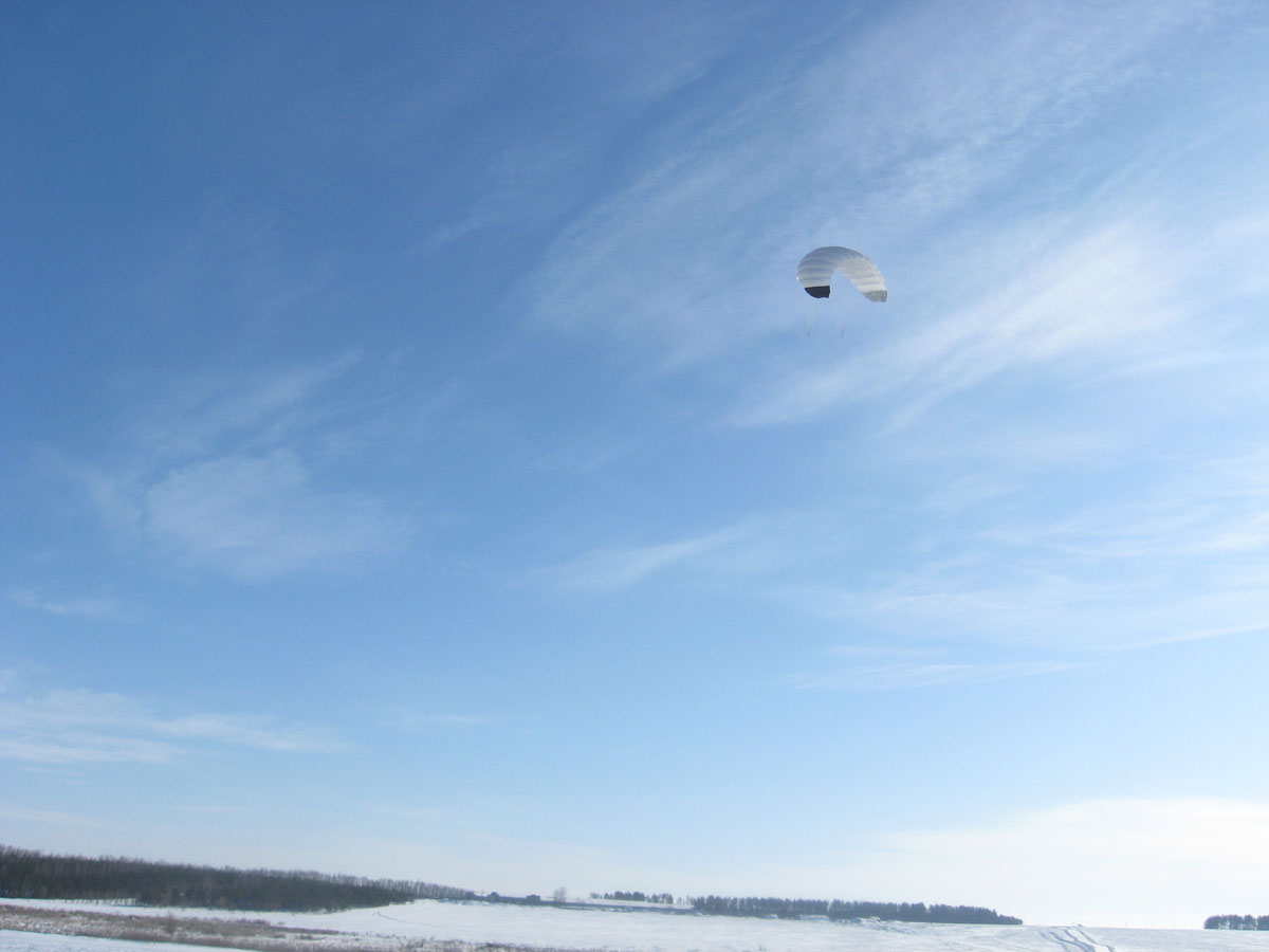 Заехав поглубже в поля, после небольшой работы над ошибками кайт стал более менее управляемым и стоял уверенно в зените,