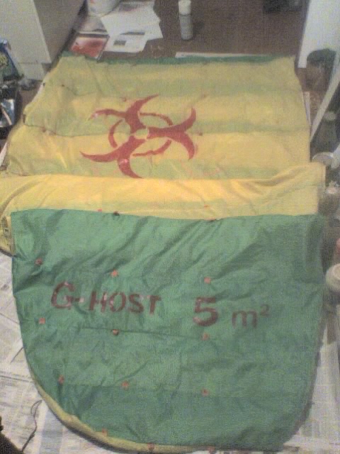 Щас немного украсил змея =) использовал трафареты и балончик с краской, распылял тоненький слой =) после высыхания, с ткани не слазиет =) я её как только не мял и не тер =)