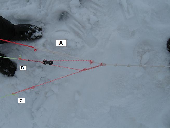 На фотке - блочек в системе регулировки угла атаки кайта. При такой настройке ряд B подстраивается "автоматом".