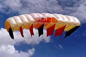 Так что мешает разработать флоуформ на стропах, с глубоким вырезом в центре и развитыми обратными косынками (или трапециями) в хвостовой части. По моему это будет довольно стабильный аппарат. Да и такое наблюдение. При строплении в четыре ряда, центр давления стабилизаторов можно сместить дальше к задней кромке.