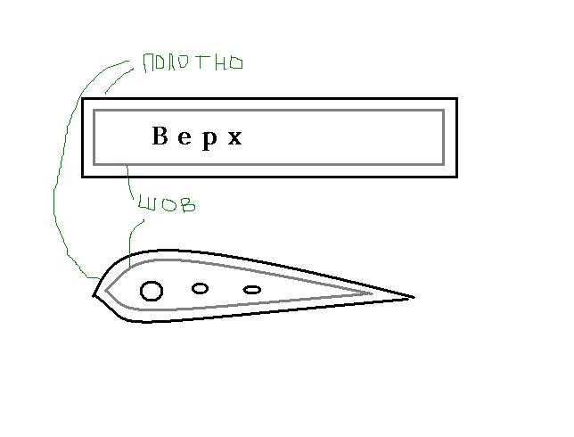 Линия края и линия шва на почти прямом полотне (например верхнее) почти одинакова по длине, НО линия шва и линия края на нервюре, в особенности на носу отличается по длине (в зависимости от припуска) (длина круга =2*пи*радиус)