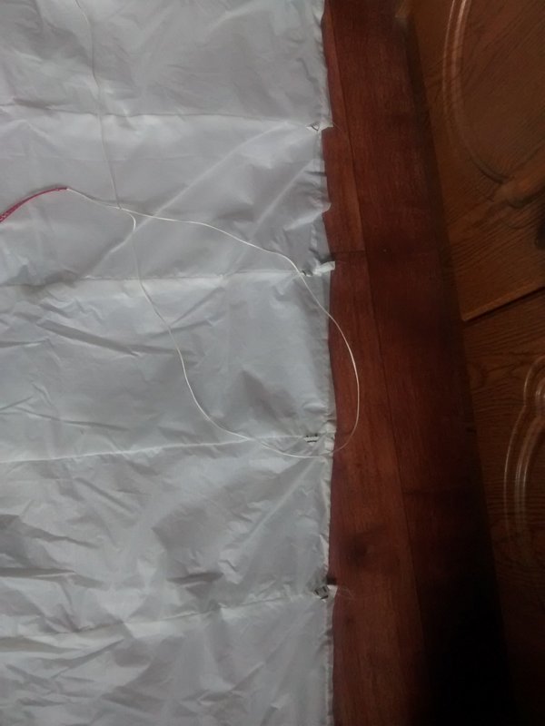 Обшить заднюю кромку можно чем угодно в том числе и той же тканью, что и купол. Или просто подвернуть заднюю кромку на 3-5 мм и прошить зигзагом.