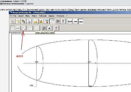...я как раз и хотел сказать,что глиссирование связано не с объемом,а с шириной.Вот.А 30 см,это растояние на котором принято указывать ширину кормы(да и носа) для сравнения досок.прога это рисует.