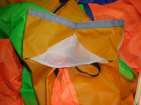 ...я карман всегда шью,продольно,из более плотной ткани,типа как мачткарман у паруса. А вот с блочком,может и нестоит морочиться,ставить его примерно посередине,а подстройка будет за счет длин плеч поводка.