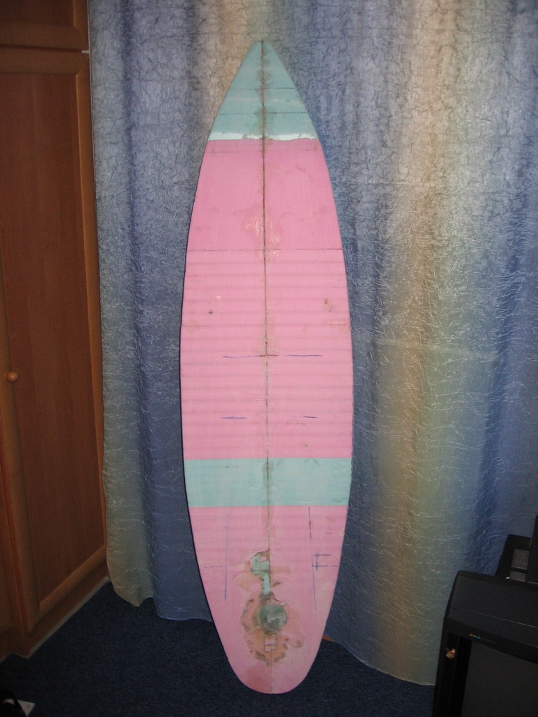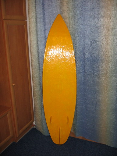Я сам 10лет назад постоил свой первый вейкборд. Он сендвичевой конструкции, которая ещё усилена коркасом из реек и брусков сосны. Сверху шлифованного пенопласта слой стеклоткани, уложенной на эпоксидной смоле. Доска в толщину 30мм оказалась очень жесткой и плавучей Smile Но как раз из-за этой хорошей плавучести возникали определённые неудобства: во время старта в воде она всегда наплаву и держит ноги на поверхности. Дабы сбалансировать как-то собственный вес приходится одевать спасательный жилет. Картина улучшается, но с "поплавком" на ногах всё же сложно барахтаться. Кто катался на тонких стеклопластиковых бордах поймет разницу.