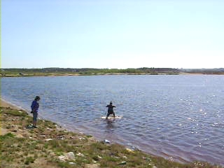 ...провел тест кайтборда за катером.Доска из реек получилась довольно мягкая,с одной стороны это хорошо,практически проглатывает "неровности" воды,да и толстые падсы этому способствуют,но зато хуже выпрыгивать(с волны),волну тоже "проглатывает". Обратно до причала больше 10 км за катером шел,думал на утро ногам настанет труба,все обошлось. Знакомый катался на фирменном вейке от ликвид форса,на нем ноги сразу забивались.Дело в том что в день катания был довольно неприятный чеп на воде.