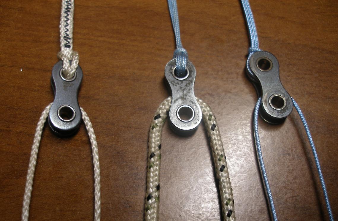 В этом отношении более безопасна металлическая ШПУЛЬКА от швейной машинки - получается, что петли двух строп всегда связаны.