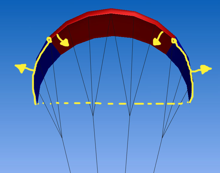 Есть еще идея сделать параску с большим удлинеием типа 5-6 и небольшими нервюрами (25-35%) от длины хорды. Они нужны, чтобы укрепить длинную переднюю кромку от проваливаний. Такой кайт может стать очень мощным конкурентом и параскам и трайдентам.