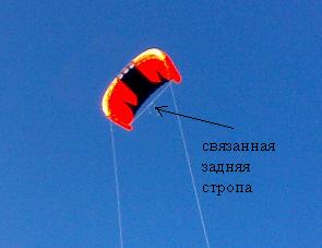 так как был далеко от дома, ушить небыло возможности, я взял и затянул ему "жопу" задними отростками строп..как бы сделал большой угол атаки...