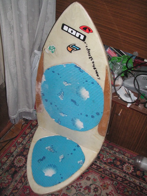 Таже беда, хотя и весит почти 3 кг. на море его кидать невозможно было, боковой ветер сносил и иногда в воздухе переворачивал. В ветровые дени катался на фанерном скиме, но пенопластовый однозначно прикольный для финтов и разворотов. Еще понял что волну брать лучше на пенопластовом с толщиной не меньше 3см и с рокером побольше гдето 5см, канты поострее, вес как можно легче.