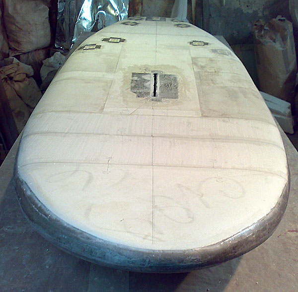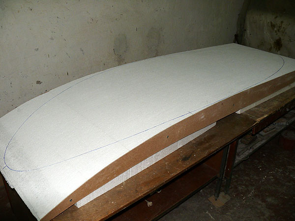 Повезло с пенопластом-нашел большими кусками.3 куска в стык,ну а дальше по известной технологии-струна,шкурка и вперед к светлому cерферному будущему...