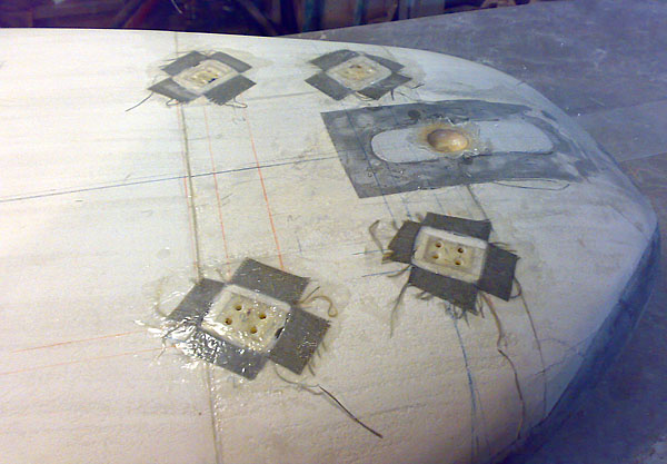 5.Шпаклевал той же эпоксидкой с добавкой двух дивных компанентов:МИКРОСФЕРА-стекляные шарики 20-50 МКМ диаметром.Смола делается лёгкой и обьёмной.И АЭРОСИЛ-перетёртый в пыль пенопласт-он даёт вязкость и прочность.Заводишь порцайку смолы,засыпаеш микросферки побольше,тщательно перемешиваешь и до нужной густоты аэросильчиком её,аэросильчиком...Шпатель и вперед...