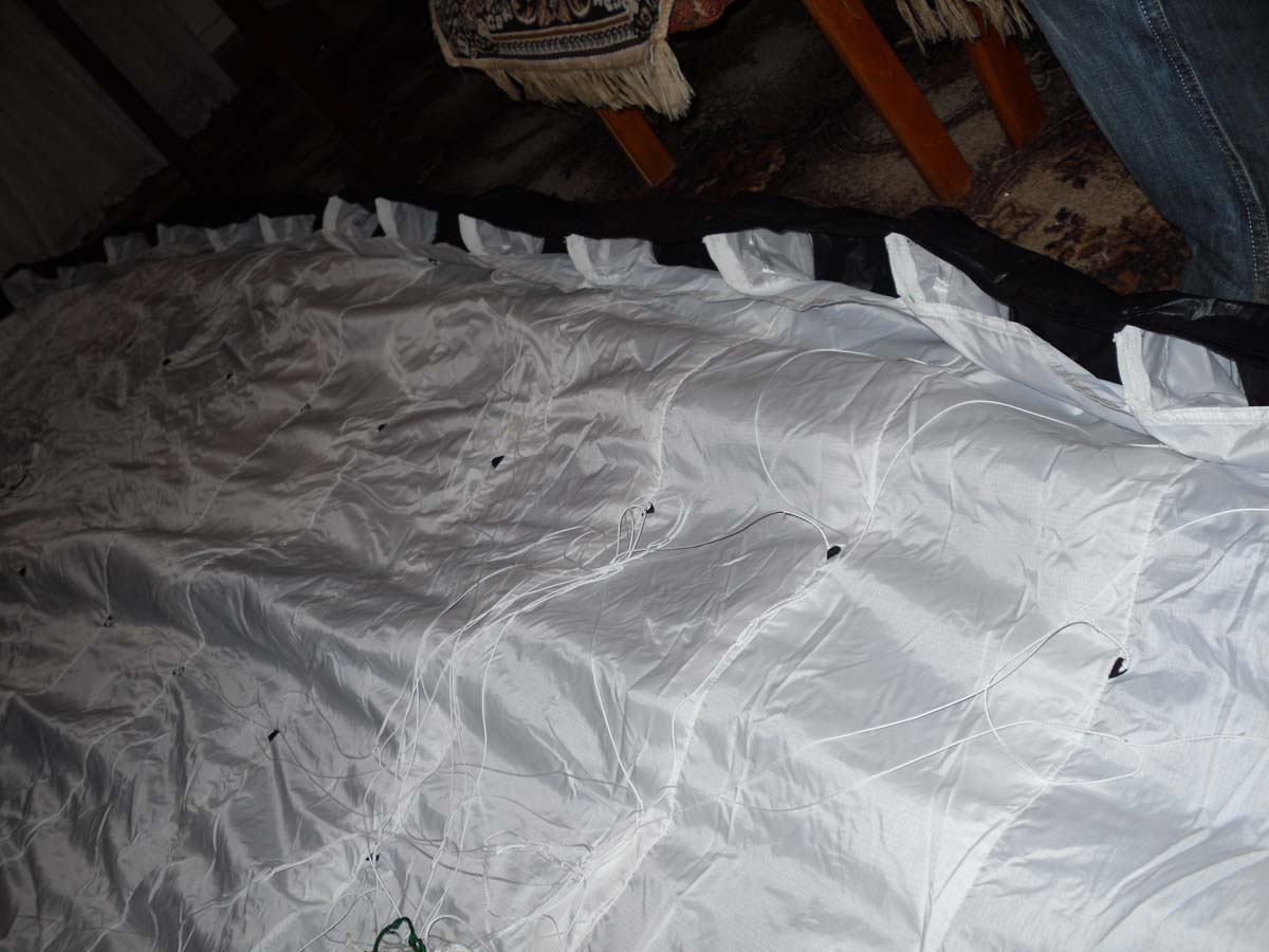 Я поставил установочный угол 0 градусов (на ушах крутка +5) градусов, как на парафойлах, но с учетом меньшего аэродинамического качества в итоге летный угол атаки думаю установится как нечто среднее между парафойлом и насой.