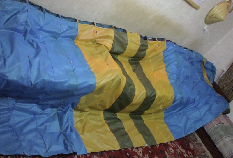 Ерлан, на счет распарывать параплан - ты не прав. Как раз нужно распарывать. Ну если конечно ты стремишься к идеалу, то ... Very Happy Всегда есть разумная достаточность. Вот к примеру хуже обстоят дела, если применяешь ткань от совсем потрёпанного параплана или кайта.