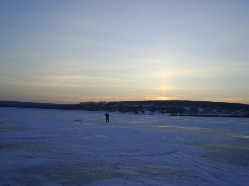 Ветер около 5 м/с, правда с порывами до 8 (может временами и больше, т.к. несколько раз просто срывало с канта), -6 морозец, практически идеальное покрытие - наст, припаянный ко льду (правда местами и чистый лед, но не много)...