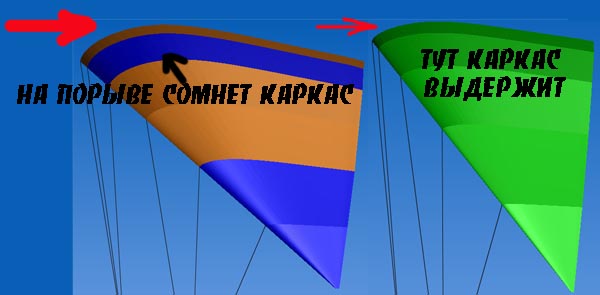 Задача, уменьшить углы атаки на ушах кайта, чем снизить его лобовое сопротивление. И убрать место, наиболее подверженное вворачиваниям.