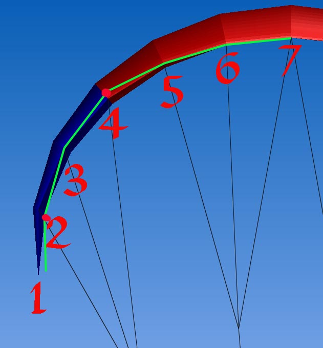 Но те же принципы применимы и к "Пассатижу". Смысл чтобы уменьшить углы атаки на ушах и рассалбить стропы на самых часто подворачивающихся местах купола, в средней трети каждой половины