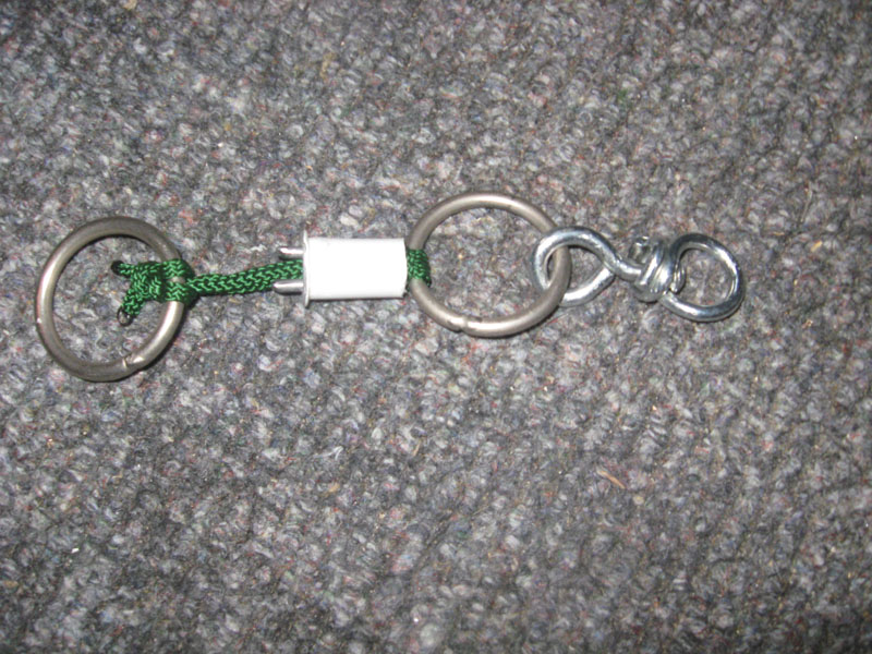 а нафиг такая болванка на отцепе(кусок ключа), все усилие приходится на веревочку