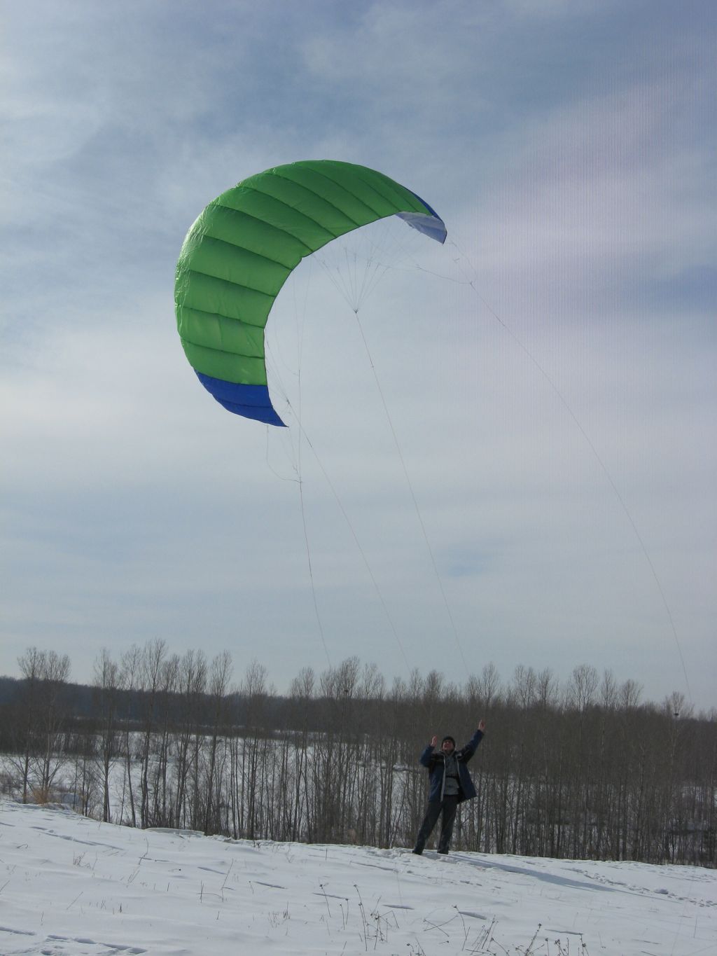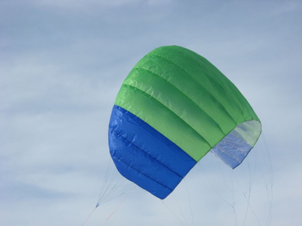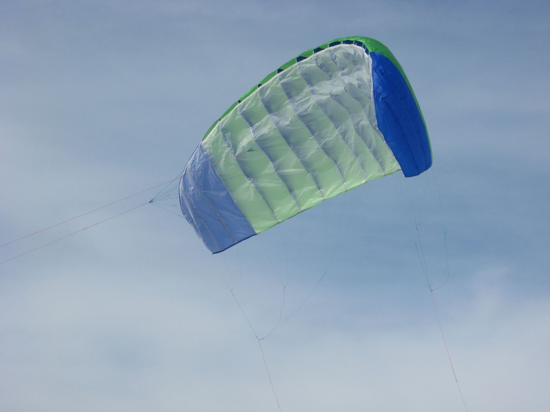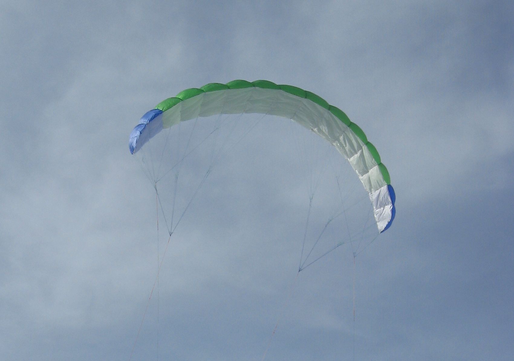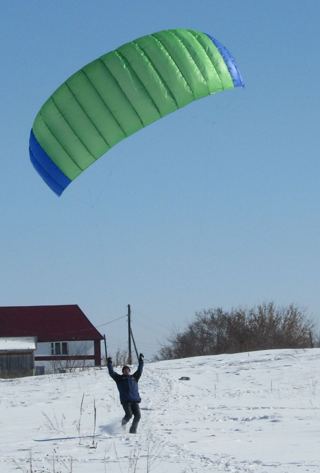 Ветра как такового не было примерно 1-2м\с - кайт неустойчиво вёл себя в полёте, на движения рук реагировал вяло. При выходе в зенит - падал назад почти до земли, часто подворачивал уши, но при рывке за клеванту -ухо распрямляется. Во второй день ветер был только у обрыва реки - еле поднял кайт за силовые стропы, чуть только уходит от края обрыва, восходящего потока нет, он падает. На фото видно- управляющие стропы отпущены.