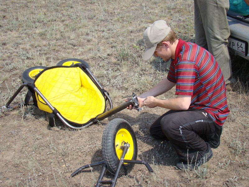 Сняли у неудачно сконструированной багги переднее колего и прикрутили к задней оси моей тележки