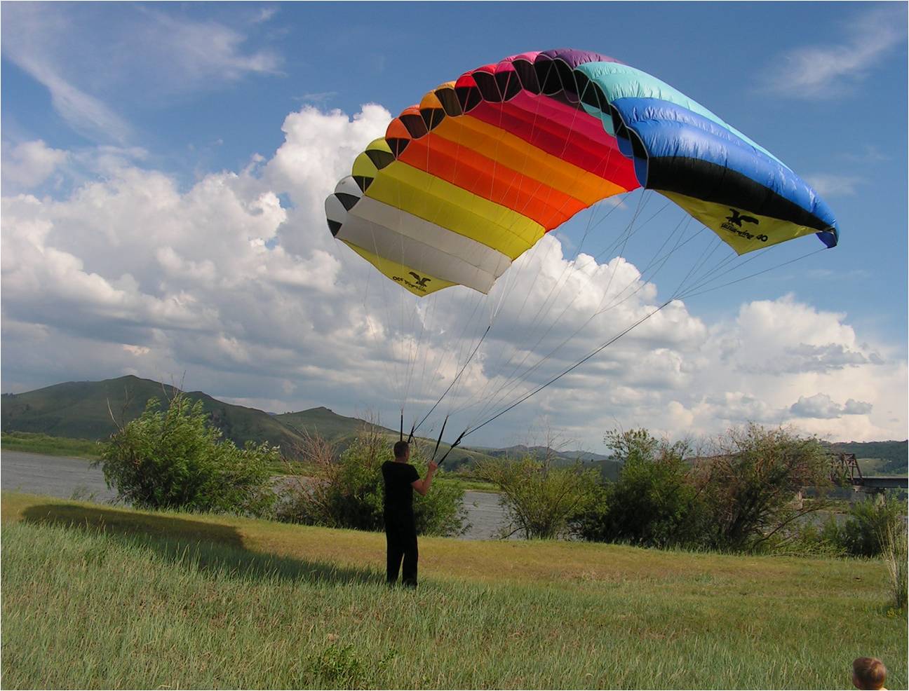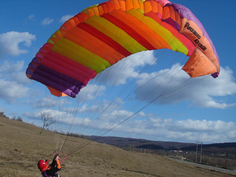 беда в том, что на таких крыльях нет ушных строп и акселератора, для уменьшения площади крыла при увеличении ветра неожиданного, так что прихордится только складывать в воздухе тянул я за центральные стропы и то не всегда помогает...