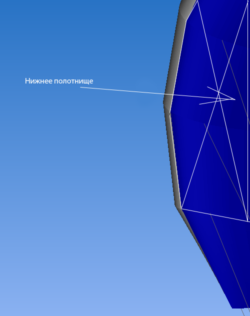 я считаю такую зашивку нижнего полотнища неправильно, т.к. петли под нагрузкой будут портить гладкость купола.