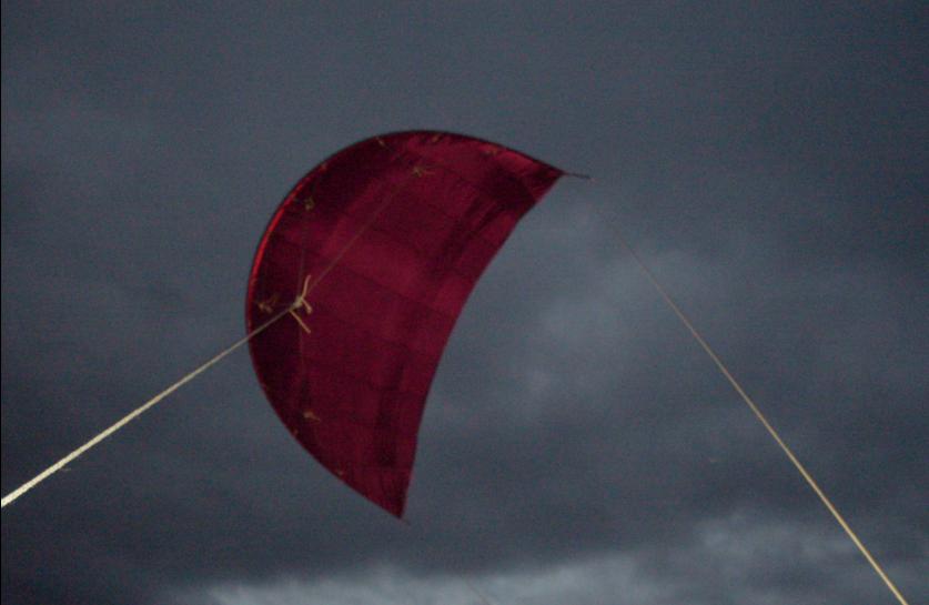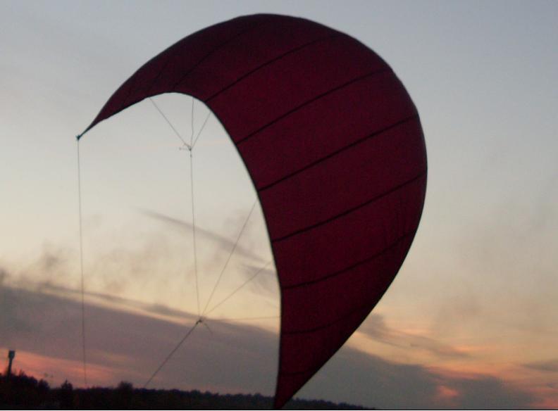 шить 8м фойл долго. чтобы не было скучно, сшил вчера 2м2 параску. в качестве каркаса 3 сложенных вместе 2мм стеклопластиковых прутка от оптического кабеля. управляющие 6м. летает хорошо, но ОЧЕНЬ шустро. по сравнению с фойлом-пилотажкой той же площади - электровеник. ) опять же, по сравнению с фойлом, ветровое окно пошире.