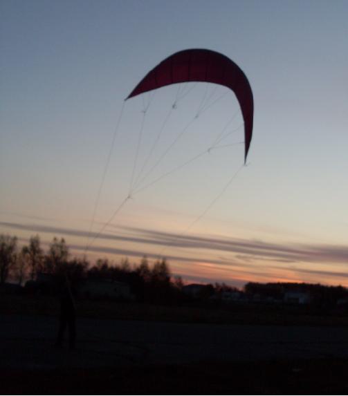 шить 8м фойл долго. чтобы не было скучно, сшил вчера 2м2 параску. в качестве каркаса 3 сложенных вместе 2мм стеклопластиковых прутка от оптического кабеля. управляющие 6м. летает хорошо, но ОЧЕНЬ шустро. по сравнению с фойлом-пилотажкой той же площади - электровеник. ) опять же, по сравнению с фойлом, ветровое окно пошире.