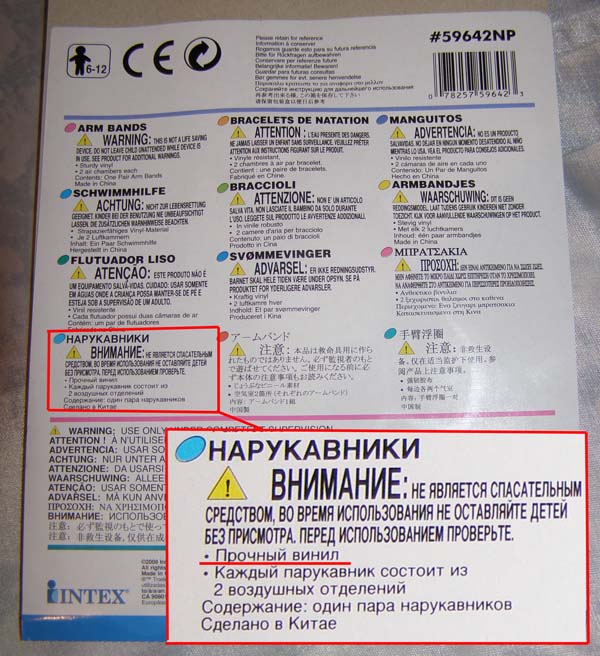 Оборотная сторона упаковки от нарукавников.