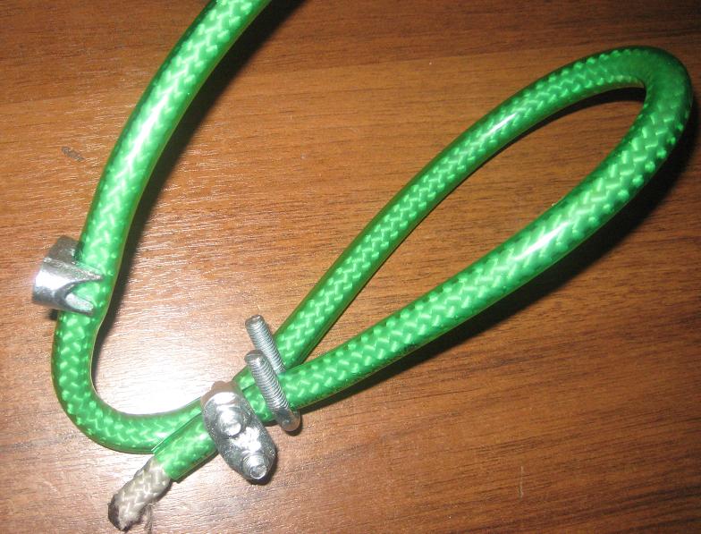 В ЛЕРУА купил шнур капроновый с сердечником 8 мм. 1м-17руб, шланг 8х1.5 1м-50руб, карабин-16руб, зажим троса 8мм 2шт-22руб. итог -105руб