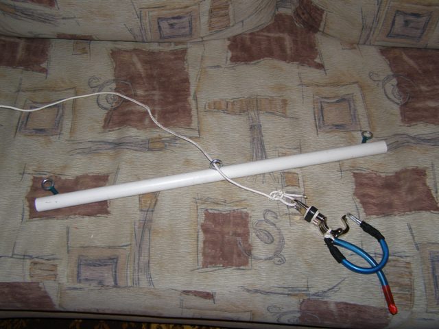 Ох и молодец! Действительно хорошая работа, а треснула труба, так это мелочи... Кажется сильно большое отверстие для депаверной верёвки, а верёвка у тебя гараздо меньше по диаметру чем отверствие для неё. Это и стало слабым местом. Попробуй вместо овальнорасплющеной трубы (в которую влезло пол коробка спичек Very Happy ) поставить трубку медную, продаётся на рынках в отделах теплоснабжения. Если верёвка по которой ходит планка имеет диаметр, пусть 10 мм, то бери трубку 12-14 мм. вставляй в белую и расклепай медную с двух сторон большими шариками от подшипников. Будет самое то!