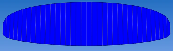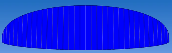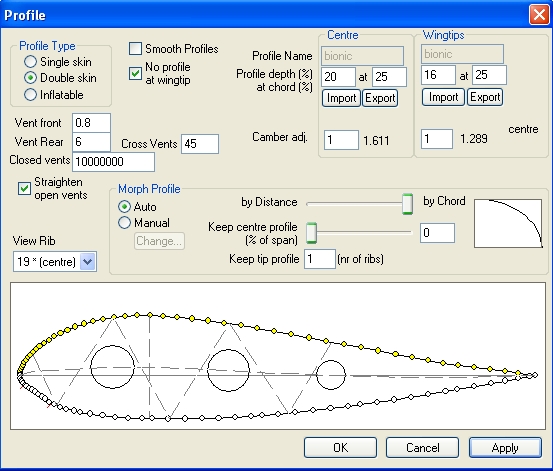 профиль тот же бионик, центр 22%, уши 17%. Я теперь только этот профиль и буду использовать.Строповка через нерюру, без диагоналок (хотя есть еще 3 таких проекта с разной строповкои и диагоналками). За основу брал свой спидглайдер, форму поменял и еще кое что.