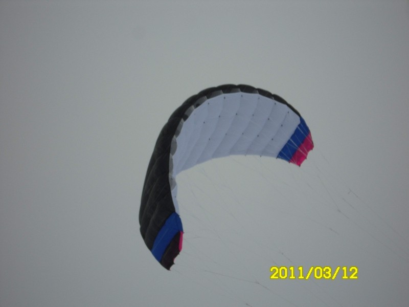 во кайтик ,пошит и опробован мной, очень шустрый ,очень тяговитый, при ветре 6 м.с. ( по показанию анемометра),(а я 85 кг)вполне полноценно катаюсь на лыжах по пухлому не глубокому (см10) снегу, очень тяговит и резок, развивает приличную скорость , я б даже сказал что получился спортивный вариант, за основу взят профиль от гаммы ,в результате продувки доведен до наилучшего аэродинамического качества, ну очень он понравился мне, был очень удивлен его работоспособности..