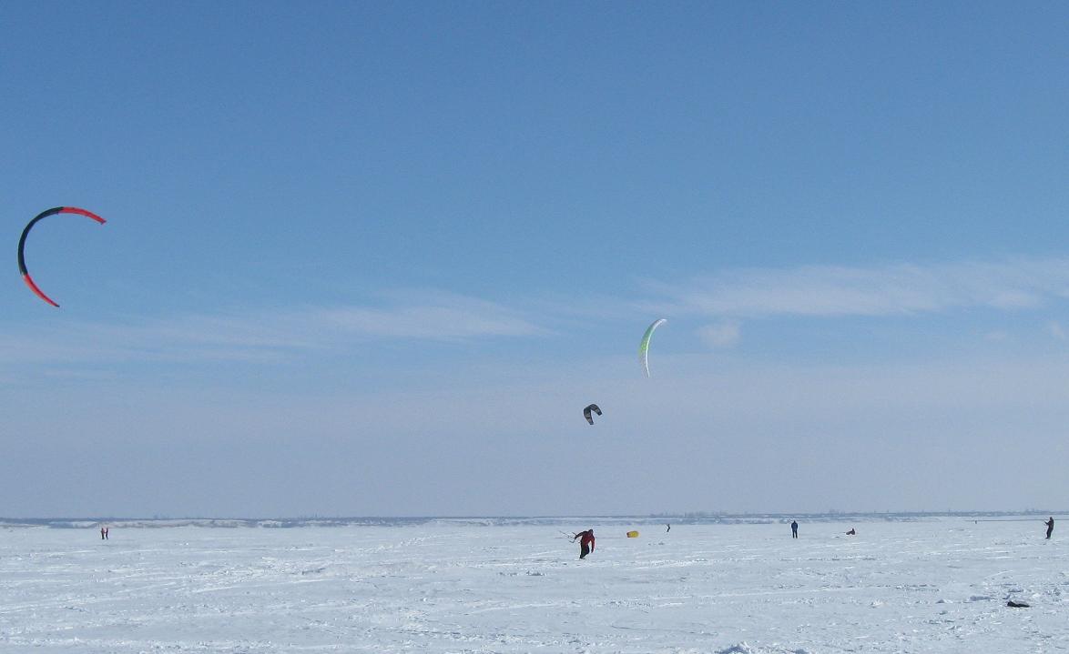 Да и еще - пешком с кайтом в первые дни обучения находился - давно такого со мной не было - когда идешь против ветра по колено в снегу и тащишь борд и кайт - вспоминаешь как первопроходцы то север покоряли? - героические люди были.