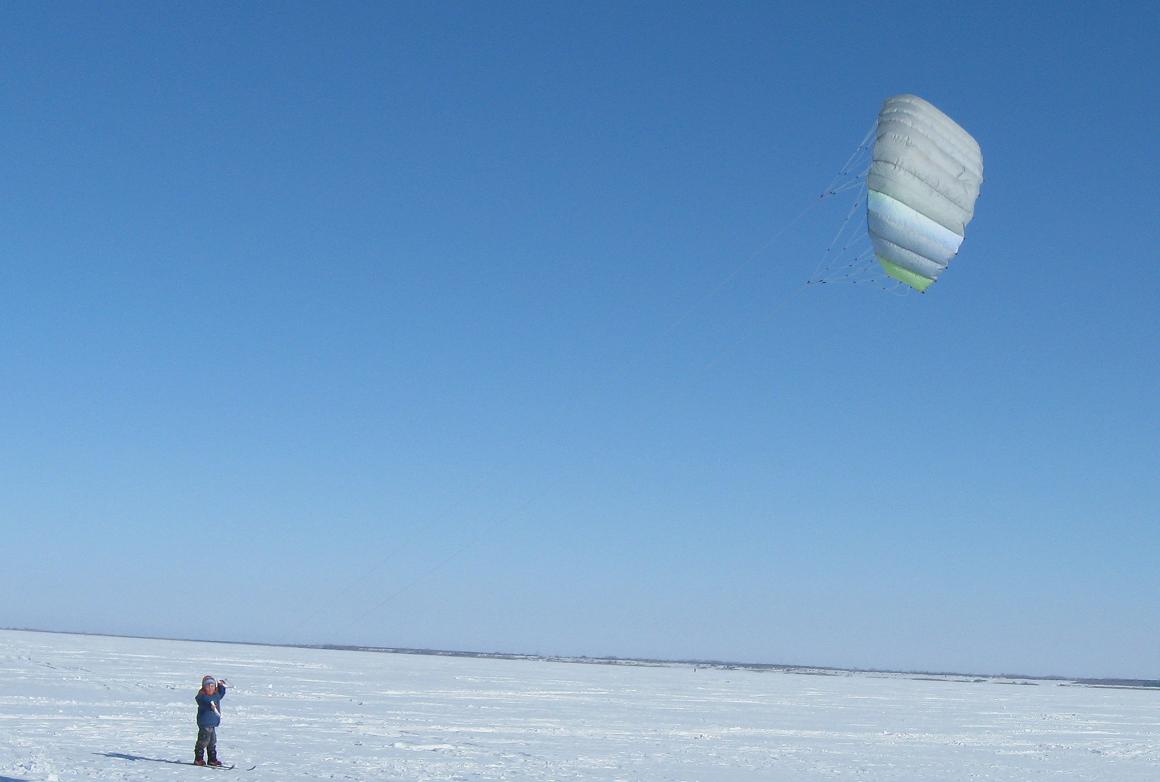 а это подростающее поклоение (5лет) Пилотировать мама учила минуты три. Дальше сам. На лыжи побоялись ставить. Наверное на следующий год. А за фал покатали. Ничего так - метров 500 проехал.
