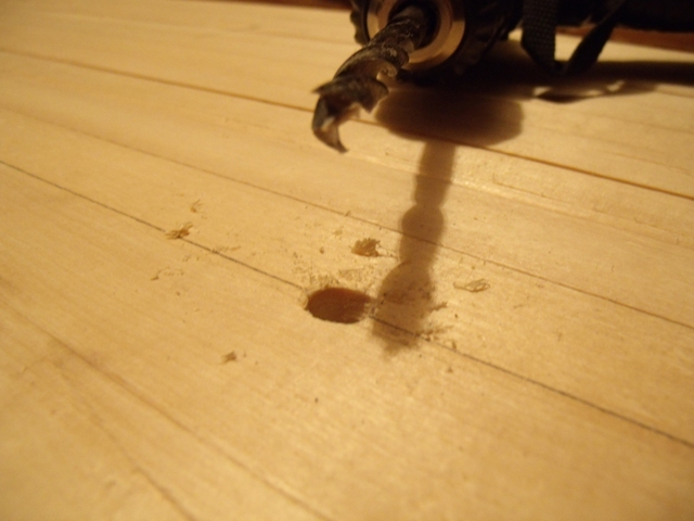 дальше надо снять немного дерева под основания гаек. на предыдущей доске это сделал просто ножиком, но тут вот нашлась бормашинка и все очень быстро выфрезировалось.