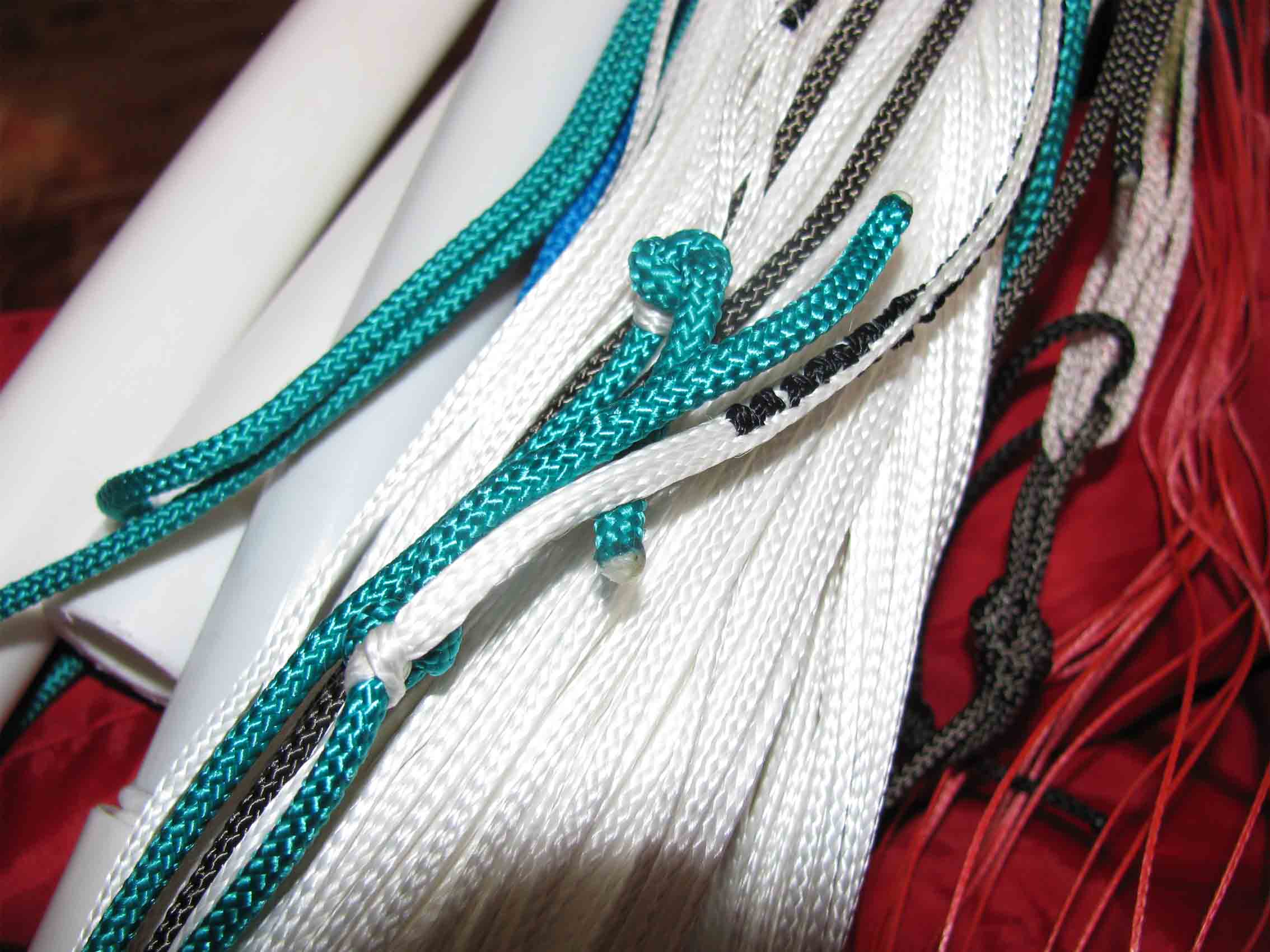 P.S. У меня было так запутанно недавно из за преземления в кустовое место с веточками на полу, так думал никогда не распутаю, но пол часа работы и норма, так что будь готов к трате времени на это, если место не очень чистое. Из за того,что они путаются, мне один парапланерист подарил их с своего параплана (видимо терепния не хватило, на борьбу с путаницей), а себе поставил нормальные в оплетке. Но пользоваться можно конечно. На ощупь, как будто пропитаны чем то.