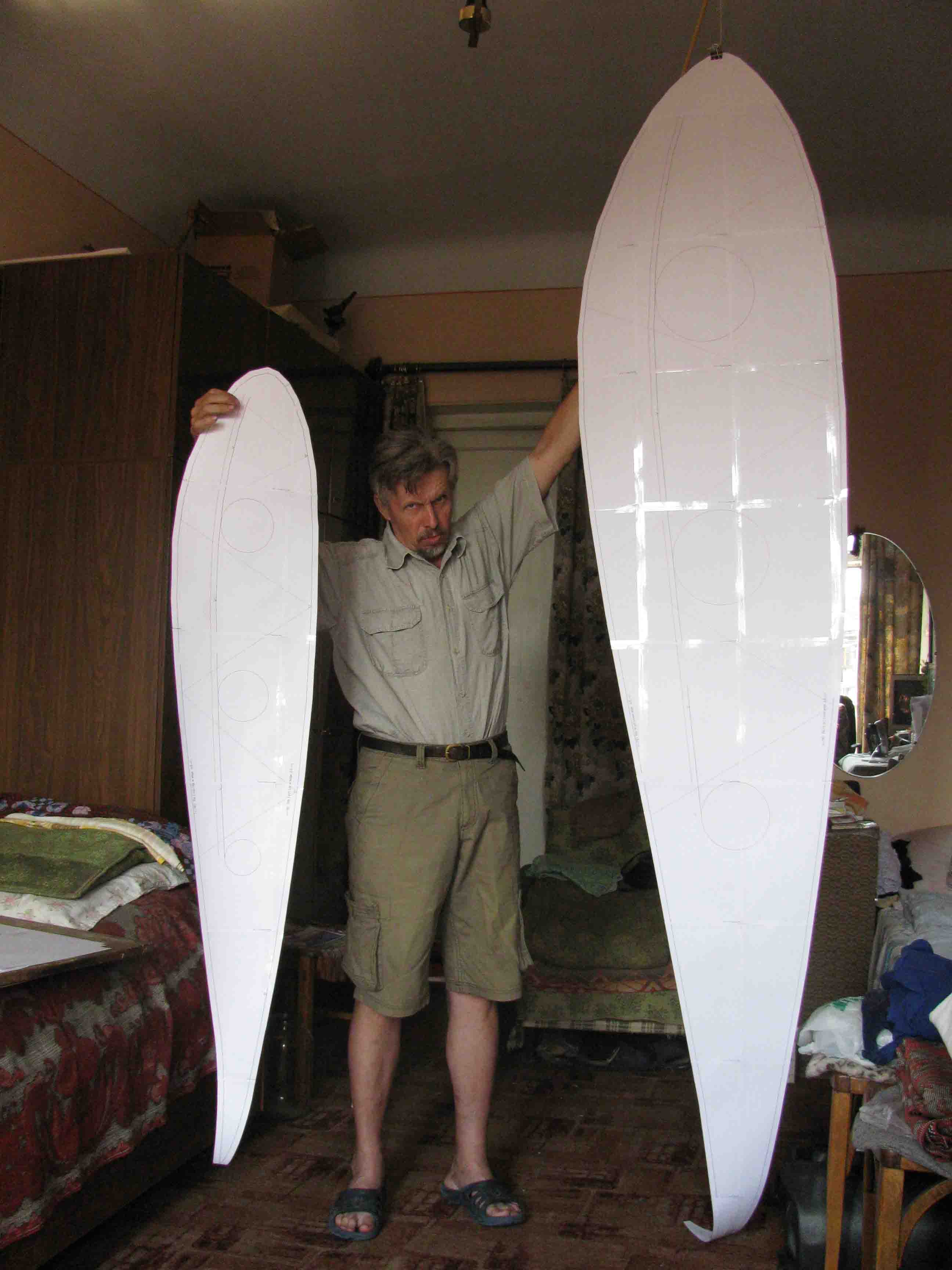 К сожалению у меня не все так быстро Sad , как у Threeksai,но все же работа потихоньку продвигается.Готовы выкройки.Самая большая нервюра и самая маленькая.