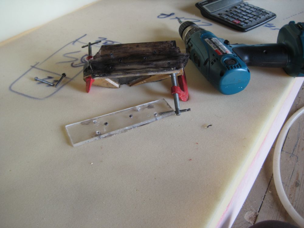 закрываем зарание приготовленым орг стеклом и вставляем болты.