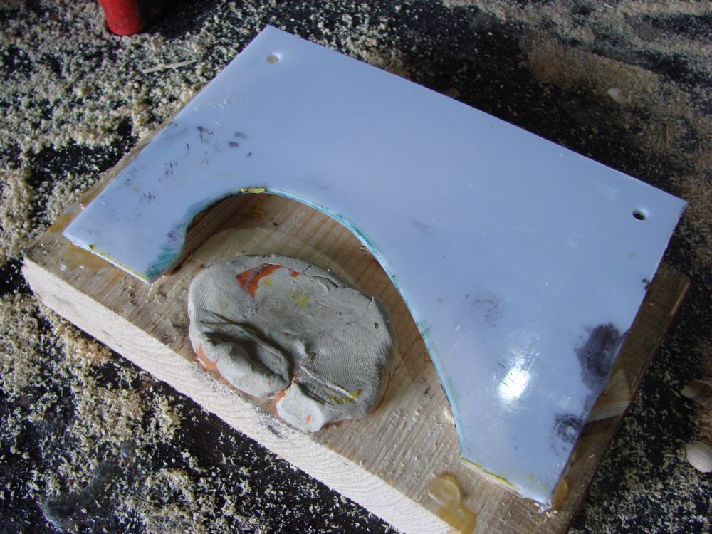 все правильно кроме того что вторую половину делаем также... Просто после обклейки верха и затвердевания- не нужно эту половину матрицы снимать с болвана, надо снять ее одним куском вместе с болваном и перевернуть. снять лишки пластилина герметизирующего. покрыть разделительным слоем болван вместе с припусками готовой половины матрицы и уложить стеклоткань со смолой... после вставания смолы. разъеденить две половины матрицы и вынуть болван.